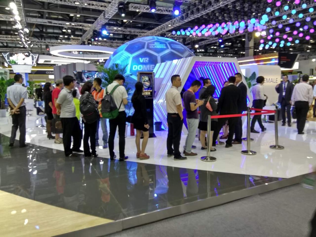 Fulldome.pro was at the China National Convention Center in Beijing for the 10th Wanda Group Annual Commercial Convention in August 2016. We were at the expo with our 5 meter closed dome and motion seating, demonstrating the immersive Dark Ride Dome solution which brings amusement park style entertainment to shopping centers and arcades.